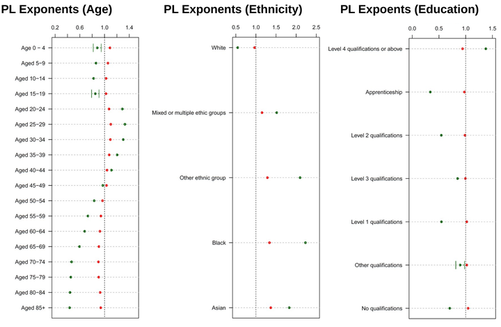 Density scaling laws complement traditional population scaling laws by enabling the analysis of the full range of human settlements and revealing rural-to-urban transitions with breakpoints at consistent population densities. However, previous studies have been constrained by the granularity of rural and urban units, as well as limitations in the quantity and diversity of indicators. This study addresses these gaps by examining Middle Layer Super Output Areas (MSOAs) in England and Wales, incorporating an extensive set of 117 indicators for the year 2021, spanning age, ethnicity, educational attainment, religion, disability, economic activity, mortality, crime, property transactions, and road accidents. Results indicate that the relationship between indicator density and population density is best described by a segmented power-law model with a consistent breakpoint (33 +- 5 persons per hectare) for 92 of the 117 indicators. Additionally, increasing granularity reveals further rural-to-urban transitions not observed at coarser spatial resolutions. Our findings also highlight the influence of population characteristics on scaling exponents, where stratifying dementia and ischaemic heart disease by older age groups (aged 70 and above) significantly affects these exponents, illustrating a protective urban effect.